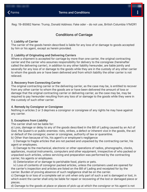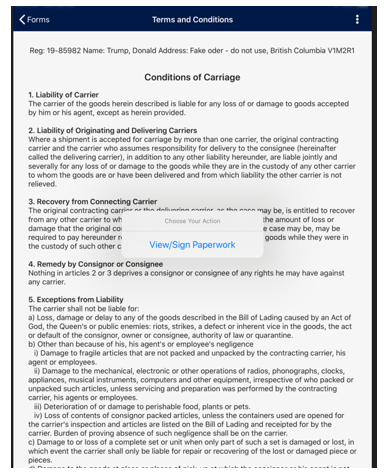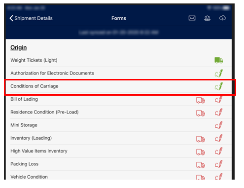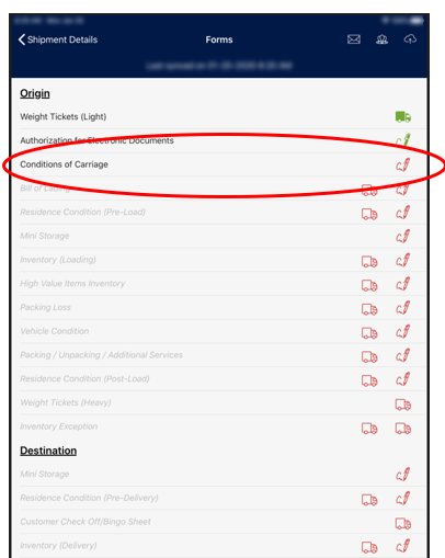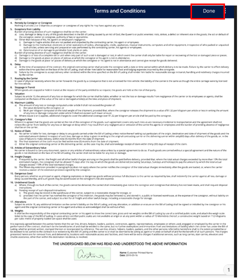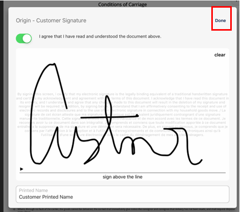 With the Conditions of Carriage form, the customer agrees to the terms of the move.