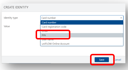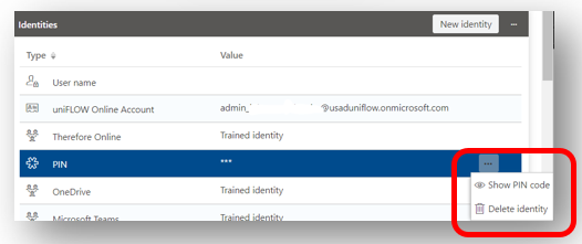 C) Highlight the PIN row under Identities. Place cursor to the end of row to select the 3 dots to select either: