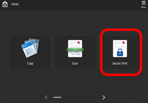 A) Open a file at your computer. Select File >> Print. Select Canon Secure Print, choose print options and print your file.