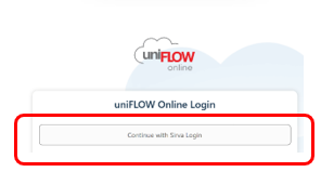 B) Log into the uniFLOW Online tenant by selecting the Continue with Sirva Login